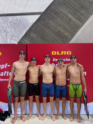 Die Jungs in der AK 17/18 konnten sich nicht nur den deutschen Meistertitel sichern, sondern auch einen Altersklassen Rekord in der Rettungsstaffel in einer Zeit von 1:48,40“ aufstellen.