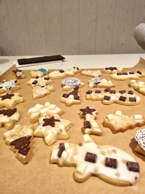 Am 14.12.2025, dem dritten Advent, fand wie jedes Jahr unsere Kinderweihnachtsfeier statt. Ab 15 Uhr waren die Türen der Lehr- und Fortbildungsstätte für die Kinder geöffnet, die Plätzchenbackstube angerichtet, das Buffet eröffnet und die Basteltische vorbereitet. Basteln konnten die Kinder jeden Alters verschiedene Weihnachtssterne und Weihnachtsbäume, von denen manche mittlerweile vielleicht an dem einem oder anderen Weihnachtsbaum hängen. Weiterhin konnten Plätzchen gebacken werden und dekoriert werden. Wem die Wartezeit zu lang wurde, konnte neben den Weihnachtsbaumanhängern auch verschiedene Bilder malen oder ganz eigene Kunstwerke erschaffen.