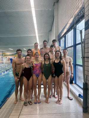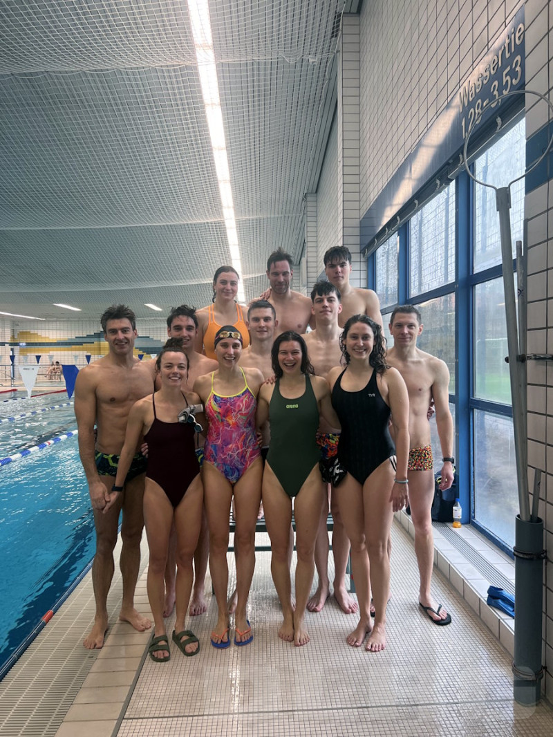 2025 haben wir erstmals eine Stundenstaffel im Rahmen des 12h-Schwimmens angeboten. Robert, Luk, Lisann, Katharina und Johanna stellten die erste und einzige Mannschaft und knackten bereits 2025 die 5km Hürde.